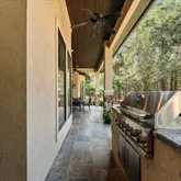- Exterior Features: Covered Patio, Deck, Sprinkler Irrigation, Outdoor Kitchen, Porch, Patio, Private Yard, Tennis Courts