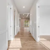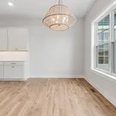 The first-floor primary suite features a luxurious bathroom and a spacious walk-in closet, while the gourmet kitchen is outfitted with premium GE Café appliances, ideal for culinary enthusiasts. A large mudroom and a thoughtfully designed main-level laundry room, complete with upgraded storage cabinets, make household chores a breeze. No need to lug laundry up and down the stairs—this home also boasts a second-floor laundry closet, offering ultimate convenience for busy households.