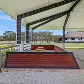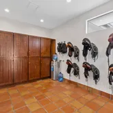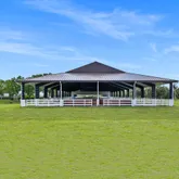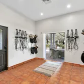 - Equestrian Features: Boarding Allowed, Bridle Path/Trails, Center Aisle, Covered Ring, Feed Room, Fly System, Grooms Quarters, Mirror, Paddocks, Regulation Dressage, Ring, Stable, Tack Room, Wash Rack(s), Water & Electric