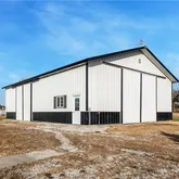The 2,464 sq. ft. main residence sits on a concrete slab foundation with a metal roof and includes Andersen windows, stainless steel appliances including a Thermador gas range, and a cozy wet bar—perfect for entertaining. Inside, you’ll find 5 bedrooms and 3 full bathrooms, an open kitchen and dining area, a spacious living room with fireplace, office, and utility room. Enjoy tranquil water views of the stocked pond from the back porch, surrounded by beautiful trees and open skies. A separate 625 sq. ft. guest house offers a full kitchen, bathroom, and open living space—ideal for guests, multi-generational living, or an on-site office. The property also features a 2,520 sq. ft. Morton outbuilding with electricity, great for storage, equipment, or workshop use. Additional highlights include a backup generator and an oversized 2 car garage.
