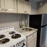 One-bedroom apartment with a bedroom, kitchen, and full bathroom