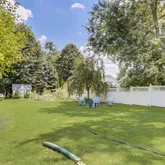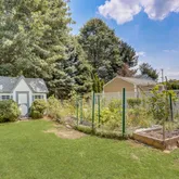 This property also boasts a sizable basement for storage or potential additional living space. Outside, you'll find a driveway for convenient parking, a beautifully fenced yard, and a spacious shed. Specimen trees and plantings adorn the exterior, enhancing the yard's beauty and adding to its exceptional curb appeal.