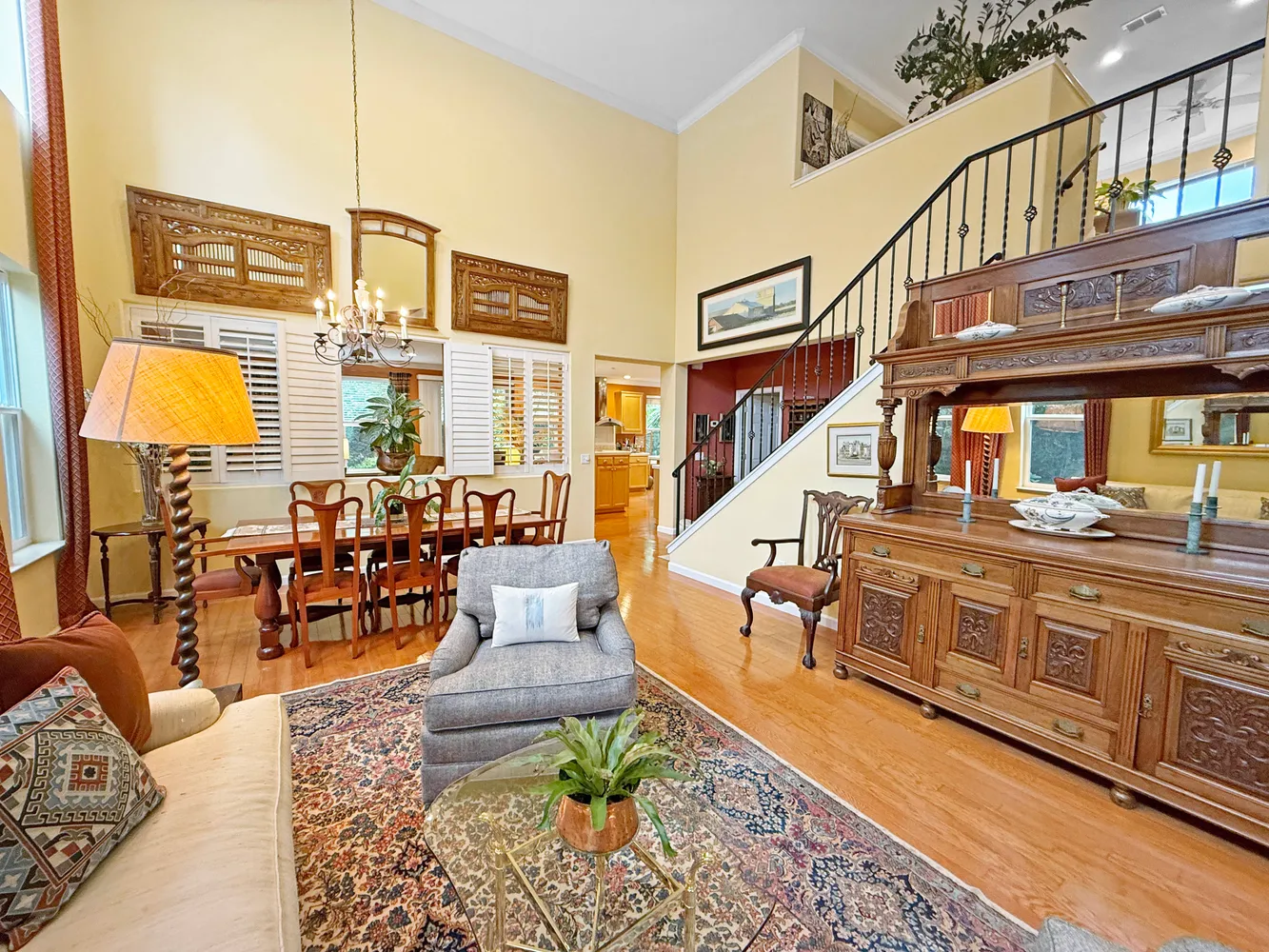 Step inside to a double-height formal living and dining room that exudes elegance and natural light. The spacious family room and kitchen combination offers the perfect setting for everyday living, complete with a cozy fireplace, a large kitchen island, and a sunny breakfast area overlooking the garden. The main level also features a bedroom, a dedicated office/den, and a full bathroom—ideal for guests or multi-generational living.