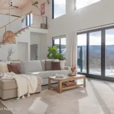 The main floor unfolds in an open flow of kitchen, dining, and living spaces - designed for both quiet mornings and festive gatherings. A cozy Jøtul gas fireplace anchors the living room, while radiant...Set against sweeping Catskill views and open sky, this modern new build is all about light, landscape, and ease. Oriented with intention, the home pulls the outdoors in—oversized windows frame rolling meadows and forest, while cathedral ceilings create an airy sense of calm from the moment you enter.