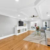 - Interior Features: Ceiling Fan(s), Ceilings-Some 9 Ft +, Attic Stairs Pulldown, Fireplace, Walk-In Closet(s), Ceiling - Smooth, Solid Surface Counters, Open Floorplan, In-Law Floorplan, Coffered Ceiling(s), Pantry