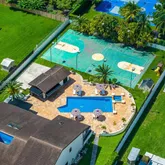 - Exterior Features: Barbeque, Built-In Grill, Exterior Lighting, Fence, Open Balcony, Patio, Tennis Court