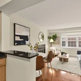 This is certainly not a cookie cutter option, and is the type of property you fall in love with immediately both in terms of layout and style. This boutique low-rise section of the community benefits from a limited number of units and offers a 2 level duplex style layout. As you enter the main level of this home you'll note the gleaming hardwood floors and loads of light flooding in from the large bay window bump out! The modern kitchen features custom cabinets, dark granite counters, and a stainless steel Frigidaire appliance suite. The large living and dining areas offer loads of space and opportunity to entertain, and is anchored by an ornate fireplace. Head upstairs and you'll again be greeted by extra light from the skylight at the top of the stairway. Here you'll also find, tucked away in a closet on the landing, your in unit washer and dryer. And just around the bend from here is the updated spa like bath! Head just beyond this and you''l find your extra large bedroom with gorgeous south facing views of the National Cathedral!! The bedroom also features a HUGE walk-in closet, and just in case the walk-in isn't enough the bedroom is flanked on the other side by yet another closet (you may have to buy more clothes to live here;-)