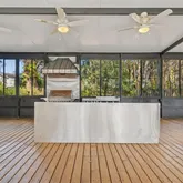 - Exterior Features: Dog Run, French Doors, Garden, Lighting, Outdoor Grill, Outdoor Kitchen, Private Entrance, Private Yard, Storage