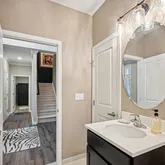 Full vanities installed (pedestal sinks replaced) in both the guest full bath downstairs and the upstairs full bath