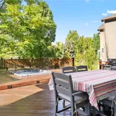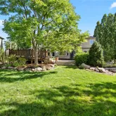 Upstairs, the primary bedroom suite offers a bump out sitting area, a spa-like five-piece bath, complete with a jetted tub and timeless travertine tile, as well as a walk-in closet. Three additional bedrooms and two more bathrooms (including a second en-suite!) complete the second story. In addition to the sprawling deck, the fenced backyard includes a slate patio, inset lighting, a custom water-fire feature, and two retractable awnings. A full, unfinished basement with 9-foot ceilings and rough-in plumbing provides a blank canvas for your vision, while recent upgrades throughout, from new paint and light fixtures to newly refinished hardwood floors, ensure a timeless, move-in-ready feel.