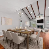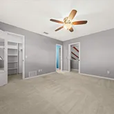- Interior Features: Cathedral Ceiling(s), Ceiling Fan(s), Living Room/Dining Room Combo, Split Bedroom, Thermostat, Walk-In Closet(s), Window Treatments