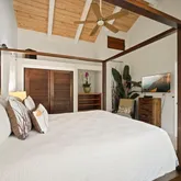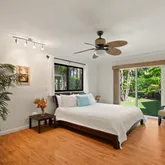 A large backyard offers room to relax and play. Ideally situated close to the 1 Hotel, shopping and other amenities. Just minutes from world‑famous Hanalei Bay, this home enjoys beautiful sunset skies and the best of North Shore living. This home is a current vacation rental.