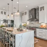 - Interior Features: Breakfast Bar, Balcony, Crown Molding, Double Vanity, Elevator, High Ceilings, Kitchen Island, Kitchen Family Room Combo, Bath In Primary Bedroom, Pots And Pan Drawers, Pantry, Pot Filler, Quartz Counters, Self Closing Cabinet Doors, Self Closing Drawers, Soaking Tub, Separate Shower, Window Treatments, Ceiling Fans, Kitchen/Dining Combo, Living/Dining Combo