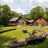 Front and back porches, landscaped grounds, outdoor sitting areas, and a custom firepit for starlit gatherings