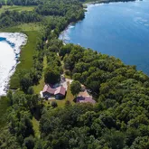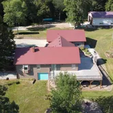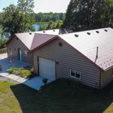 garage that has floor drains and fits 4 vehicles. There are 20 and a 50 amp outlets in the garage. With a sink and lower built-in cabinets, the garage can be a summer kitchen. The pole barn is an insulated 36x56,...Ever wanted your own peninsula/ massive chunk of beautiful wooded land on a lake? With 29.350 acres,