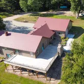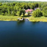 garage that has floor drains and fits 4 vehicles. There are 20 and a 50 amp outlets in the garage. With a sink and lower built-in cabinets, the garage can be a summer kitchen. The pole barn is an insulated 36x56, that has floors drains, has a new concrete apron, a bathroom, and is heated by a 150,000 BTU propane furnace or wood stove. Third bedroom has built in custom storage cabinets. In 1998, the primary bedroom, bathroom, walk-in closet, third bedroom, laundry room, hallway to garage and 4 car garage were added. Internet is fiber optic. Recent updates include: New kitchen countertops, dishwasher, kitchen sink, LVP and longer kitchen peninsula. The exterior is maintenance free ABC Seamless steel siding with log cabin pattern and a steel roof. Both the roof and siding have a transferrable limited lifetime warranty. The HVAC is new in 2019, complete with a whole house humidifier and smart thermostat. All three doors on the pole barn have garage door openers. The water softener is a refurbished water driven Kinetico. The recently replaced wood deck is 24x15 x 38x11. Deck has 8 foot sliding door for access and view. Enjoy grilling and entertaining with the brand new outdoor kitchen BBQ! Outdoor grill is plumbed to the homes propane, so no having to deal with swapping out propane tanks. Premium insulated entry doors on the house. The carpets have been professionally cleaned. There is a seasonal non softened water supply to the dock and pole barn. There is a power supply at the fixed dock that is for the included power boat lift. Basement is unfinished, climate controlled and is mainly used for storage/ utility access. There is a service door and garage door in the basement for easy storage of large or oversized items. There is an easement with the neighbor for the shared driveway. Enjoy hunting and fishing right out your backdoor! Dead Lake is a 7545 acre lake and contains walleye, bluegill, bass, northern pike, crappies, etc. Make this into your retreat or your home on the lake today!