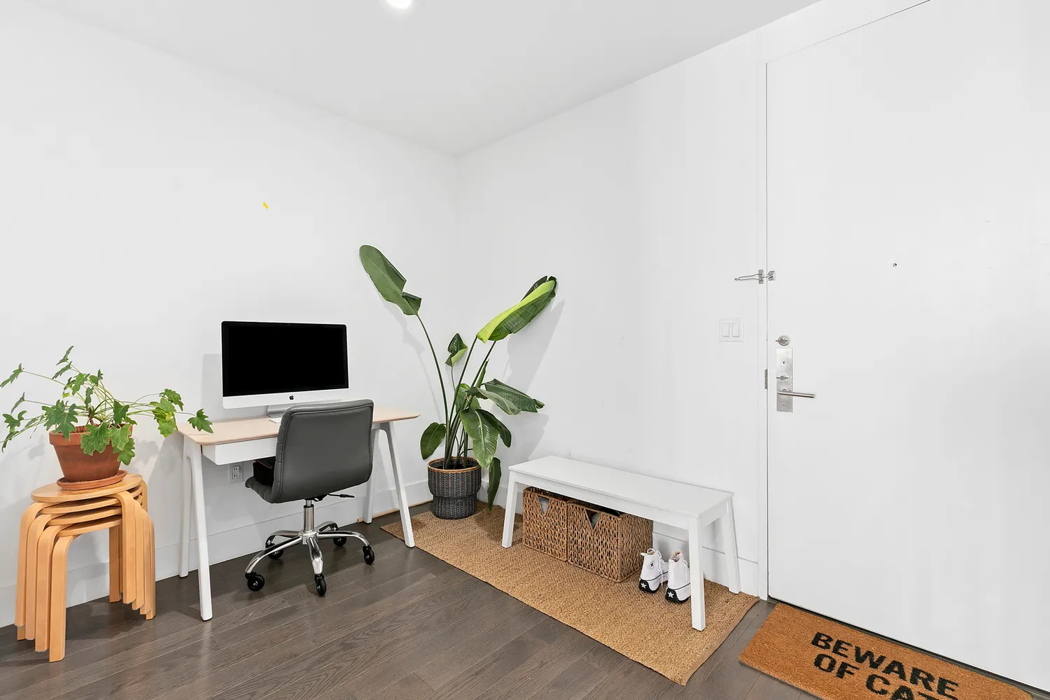The kitchen is beautifully integrated into the living space and outfitted with a Summit refrigerator, Viking gas cooktop, and Bosch convection wall oven, microwave,...This thoughtfully designed, over-sized one bedroom plus home office provides a flexible layout. Open and light-filled, this residence features high ceilings, walls of windows, wide-plank oak floors, and designer hardware and fixtures. Clean lines and a thoughtful blend of natural surfaces form a tranquil living space and in unit washer dryer.