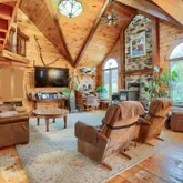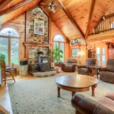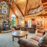 Discover rustic elegance and unmatched versatility in this remarkable 1½-story log home nestled on 14.36 scenic acres. With 3,312 square feet of living space, this property combines handcrafted charm with thoughtful upgrades designed for modern living. Inside, you’ll find three bedrooms, including a spacious primary suite featuring a private full bath with a whirlpool tub, standing shower, and walk-in closet, along with direct access to the back deck — the perfect spot for morning coffee or quiet evenings. An additional full bath and half bath serve the rest of the home, each finished with warm wood accents and inviting details throughout. The main kitchen offers generous cabinetry and an open layout ideal for entertaining, while the lower level features commercial-grade kitchen equipment — perfect for canning, catering, or holiday hosting. Comfort and efficiency abound with a central vacuum system and a rice coal stove in the main living room. The finished basement also includes a comfortable living area and an additional half bath, providing flexible space for a family room, hobby area, or recreation zone. The one-bedroom apartment above the attached three-car garage provides a private living area complete with its own full bath — perfect for guests, extended family, or rental income. It also includes a pellet stove for year-round comfort. An additional three-car detached garage offers ample space for vehicles, storage, or workshop use. Adding even more character, the original 1877 schoolhouse on the property has been thoughtfully converted into a game room and football-watching retreat, blending vintage charm with modern comfort. Whether you envision a private homestead, multi-generational living, or a countryside retreat with income potential, this home offers the perfect balance of space, comfort, and rural beauty — all surrounded by the peaceful rolling hills of Central Pennsylvania.
