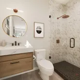 - Bath Features: Dual Flush Toilet, Marble, Split Bath, Tile, Tub w/Shower Over