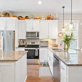 • Chef’s kitchen remodel featuring custom cabinetry and elegant finishes by "Shelf Genie of the Coastal South"