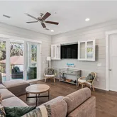 • Shiplap walls throughout the second-floor living and bedroom areas, adding warmth and character