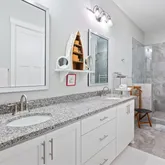 • Master bathroom remodel with high-end cabinetry and a custom-designed system from “"Closet and Cabinet Experts" for optimal organization