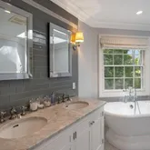 - Room Description: Primary En Suite Bath with Double Sink Vanity, Soaking Tub and Glass Shower