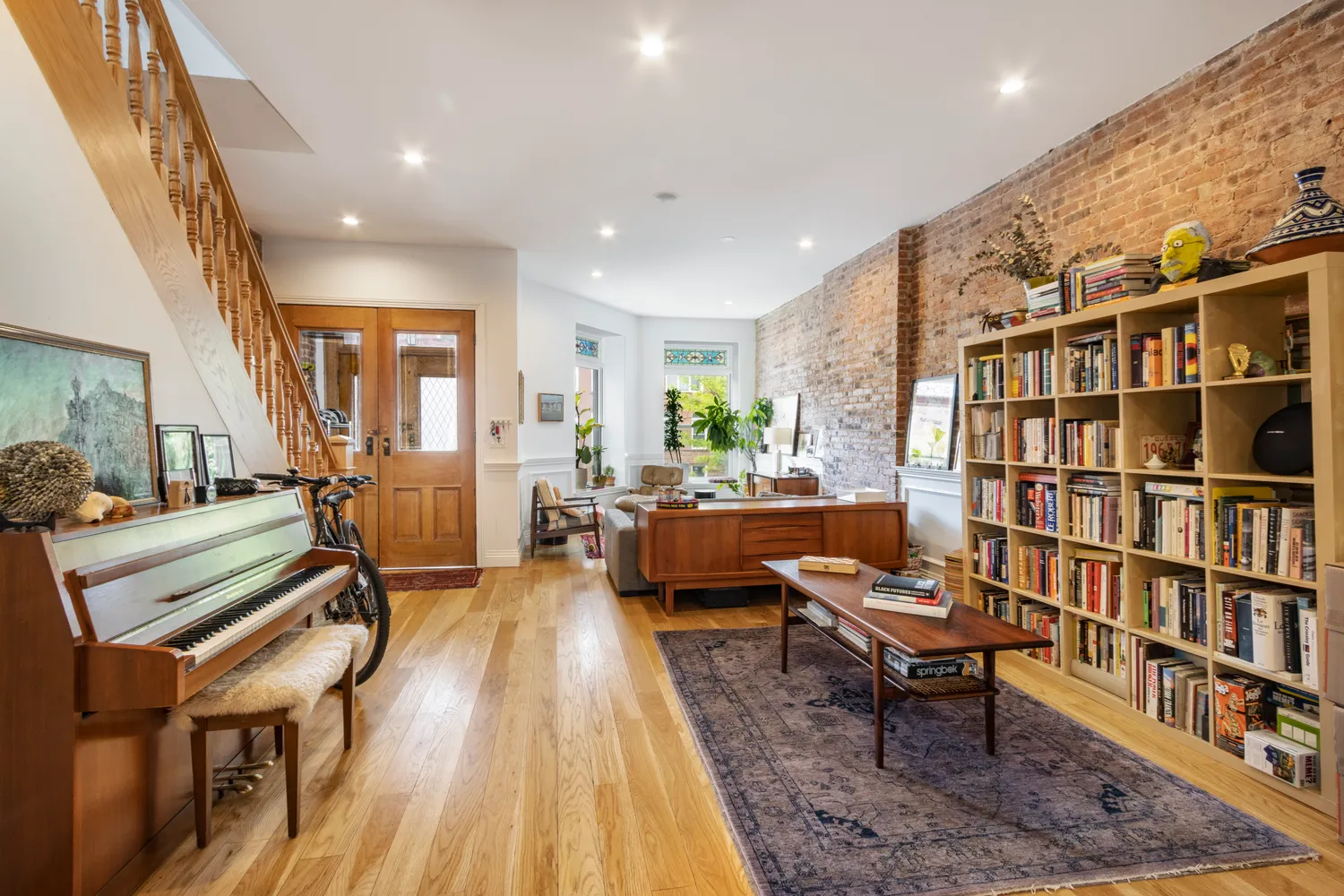 The ground floor features an enormous living and dining room with...This special home is brownstone Brooklyn living at its finest. A renovated 4 bedroom, 3 bathroom duplex with private outdoor space that oozes charm, comfort and cool. The home spans approximately 1,900 square feet, and is located in an extra-wide restored two-family brownstone on a charming, tree-lined street in prime Bedford Stuyvesant. The entire home has been restored to preserve original details and upgraded to suit modern living.