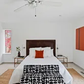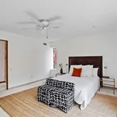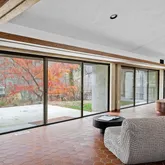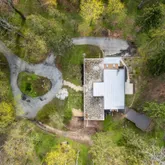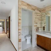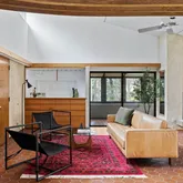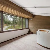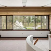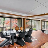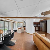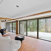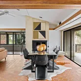 This five-bedroom, five-bathroom residence offers a thoughtful interpretation of modern design. Influenced by midcentury ideals and shaped by the evolving architecture of the late twentieth century, the house blends strong geometry with open, livable space. Its low horizontal profile and expansive glass walls give it a presence that feels both grounded and airy. Carefully planned interiors create a sense of ease and flow from one room to the next.