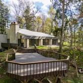 Floor-to-ceiling windows and glass sliders create seamless connections to the outdoors, where mature trees and natural landscaping surround the house in privacy. Step outside to find an oversized rear deck and patio—perfect for entertaining or enjoying a quiet moment in nature. Every element was carefully considered to ensure the home would feel as inspiring today as it did when it was built.