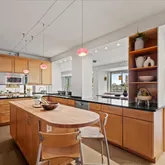 A gracious entry and foyer lead to beautifully proportioned living and dining rooms, equally suited to intimate evenings or lively gatherings. The oversized gourmet kitchen rivals those found in many single-family homes. A separate family room—complete with a fully equipped auxiliary kitchen—creates an additional living hub, ideal for casual evenings, extended stays, or hosting with ease.