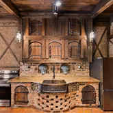open floor plan. Castle doors crafted with antique European hardware. Warm and inviting brick