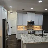 - Kitchen Features: Breakfast Bar, Cabinets White, Eat-in Kitchen, Kitchen Island, Pantry, Solid Surface Counters, View to Family Room