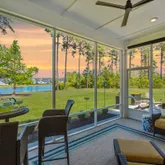 Savor morning coffee or sunset cocktails on the screened-in porch and patio, overlooking the tranquil lake, a perfect blend of relaxation and beauty. The meticulously upgraded home includes a two-car garage with epoxy flooring, a third garage converted into a gym with rubberized flooring, and a spacious laundry room with built-in cabinetry. Additional enhancements elevate the experience: custom built-ins throughout, a whole-home security system, tailored window shades, designer lighting, and extensive hardscaping with a sprinkler system for effortless curb appeal.