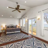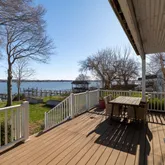 Upstairs, a second primary suite is your personal oasis, featuring cathedral ceilings and a private bath with a luxurious jacuzzi tub for ultimate relaxation. As if that wasn't enough, this primary bedroom also has its own private balcony overlooking the water, perfect for your morning coffee or to take in the sunset. Two additional bedrooms share a full bath on the upper level. Each bathroom is tastefully appointed, ensuring convenience and privacy for all.