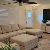 - Interior Features: Ceiling Fan(s), Crown Molding, Eating Space In Kitchen, Kitchen/Family Room Combo, Living Room/Dining Room Combo, Open Floorplan, Primary Bedroom Main Floor, Solid Surface Counters, Stone Counters, Thermostat, Window Treatments