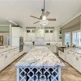 - Interior Features: Ceiling Fan(s), Central Vacuum, Crown Molding, Eating Space In Kitchen, High Ceilings, Kitchen/Family Room Combo, Living Room/Dining Room Combo, Open Floorplan, Primary Bedroom Main Floor, Solid Wood Cabinets, Split Bedroom, Stone Counters, Thermostat, Vaulted Ceiling(s), Walk-In Closet(s)