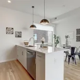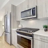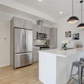 The main level is where life happens. A spacious living room gives you plenty of room to host friends, unwind after a long day, or simply enjoy a quiet night in. The modern kitchen flows effortlessly into the space and is equipped with stainless steel appliances, quartz countertops, and European cabinetry with soft closing hardware, making cooking and entertaining feel easy and natural.