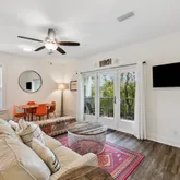 The owner's...Welcome to the condominiums at Hidden Lake, ideally located in the heart of Blue Mountain Beach directly on Scenic Highway 30A. This 2020-built, ground-floor residence features a seamless, open-concept floor plan that effortlessly connects the living room and kitchen, creating a comfortable and functional space for everyday living and entertaining. The kitchen is equipped with stainless steel appliances, granite countertops, and ample cabinetry, making it as practical as it is stylish.