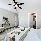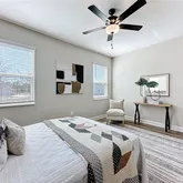 - Interior Features: Cathedral Ceiling(s), Ceiling Fan(s), High Ceilings, Primary Bedroom Main Floor, Split Bedroom, Thermostat, Vaulted Ceiling(s), Walk-In Closet(s)