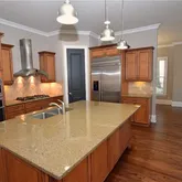 - Kitchen Features: Cabinets Stain, Kitchen Island, Pantry, Stone Counters, View to Family Room