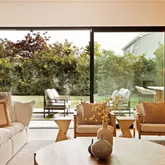 Offered **fully furnished with Restoration Hardware pieces throughout—or partially furnished to suit tenant preference—**the residence is truly turnkey. Simply arrive, unpack, and feel at home. Warm wood tones, natural stone, and expansive walls of glass define the interiors, while soaring ceilings and abundant natural light enhance the open-concept living and dining spaces with seamless indoor-outdoor flow.