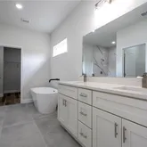Luxurious master suite with a spa-like bathroom featuring dual vanities, a large walk-in shower, and a freestanding soaking tub for your own private retreat