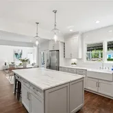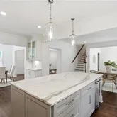 - Kitchen Features: Breakfast Bar, Cabinets White, Kitchen Island, Stone Counters, View to Family Room, Wine Rack