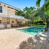 First Floor: Guests are welcomed through the custom mahogany arched entry door into an imported tile foyer with tray ceiling leading to a charming light-filled living room warmed by plank wood floors and a wood-burning marble-mantle fireplace. An elegant formal dining room with crown molding and shadow boxing opens to the gourmet kitchen with French La Cornue gas range with double cast-iron ovens and grille, Liebherr refrigerator with two freezer drawers and icemaker, Bosch dishwasher, 1200-watt microwave, Brazilian hardwood island seating 6, water filtration system, inset cabinets with custom glides, and Carrera countertops with LED task lighting and hidden electrical outlets. To the right of the kitchen lies a secluded guest suite, a pantry and an oversized laundry room with chute and new LG front-loading washer/dryer. To the left, beyond the powder room, an elongated family room encompasses a wet bar with LED-lit quartz counters, glass/stainless temperature-controlled 51-bottle wine fridge, and French doors which open out to the awning-covered entertaining patio and pool beyond. Second Floor: Atop the wide landing, a private primary suite overlooking the pool includes custom walk-in closets, luxurious Carrera marble master bath with make-up counter, walk-in shower and soaking tub. One additional guestroom with ensuite bath and two guestrooms with shared bath all enjoy walk-in closets with custom built-ins. Special features include: Emtek keyless entry to house and 2-car detached side-load garage, MyQ garage remote, bi-level concrete construction, high-impact windows and doors, barrel tile roof with new flat roof portion recently resurfaced, new gutters, and plantation shutters. Additional upgrades include a water filtration system and new 50-gallon water heater, new dual Carrier high-performance two-stage HVAC system with smart home controls and upgraded sound-dampening, an integrated Control4 / SONOS entertainment system, wet bar, 51-bottle wine refrigerator, oversized laundry chute, wood burning fireplace, security surveillance system with DVD back-up, commercial grade outdoor electrical panel, electric dog fence, and an underground propane tank for outdoor grill and indoor range. DISCLAIMER: Information published or otherwise provided by the listing company and its representatives including but not limited to prices, measurements, square footages, lot sizes, calculations, statistics, and videos are deemed reliable but are not guaranteed and are subject to errors, omissions or changes without notice. All such information should be independently verified by any prospective purchaser or seller. Parties should perform their own due diligence to verify such information prior to a sale or listing. Listing company expressly disclaims any warranty or representation regarding such information. Prices published are either list price, sold price, and/or last asking price. The listing company participates in the Multiple Listing Service and IDX. The properties published as listed and sold are not necessarily exclusive to listing company and may be listed or have sold with other members of the Multiple Listing Service. Transactions where listing company represented both buyers and sellers are calculated as two sales. "No payments made until title passes" Some affiliations may not be applicable to certain geographic areas. If your property is currently listed with another broker, please disregard any solicitation for services. Information published or otherwise provided by seller, listing company or its representatives is deemed reliable but are not guaranteed and subject to errors, omissions, or changes without notice. Copyright 2026 by the listing company. All Rights Reserved.
