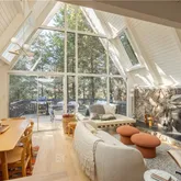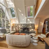 Step inside to be greeted by an inviting open living area, bathed in natural light, thanks to the striking floor-to-ceiling windows that offer breathtaking views of the surrounding forest. Cozy up by the fireplace on chilly nights or venture onto one of the three serene decks to immerse yourself in the tranquil atmosphere.