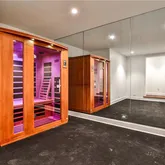 - Interior Features: Beamed Ceilings, Bookcases, Crown Molding, Double Vanity, Dry Bar, His and Hers Closets, Sauna, Wet Bar