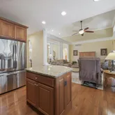 - Room Features: Island, Flooring - HardWood, Lighting - Recessed, Breakfast Bar, Kitchen - Propane Cooking, Double Sink