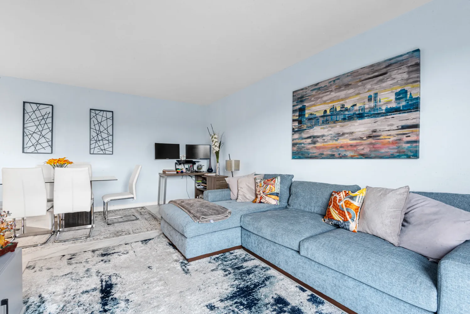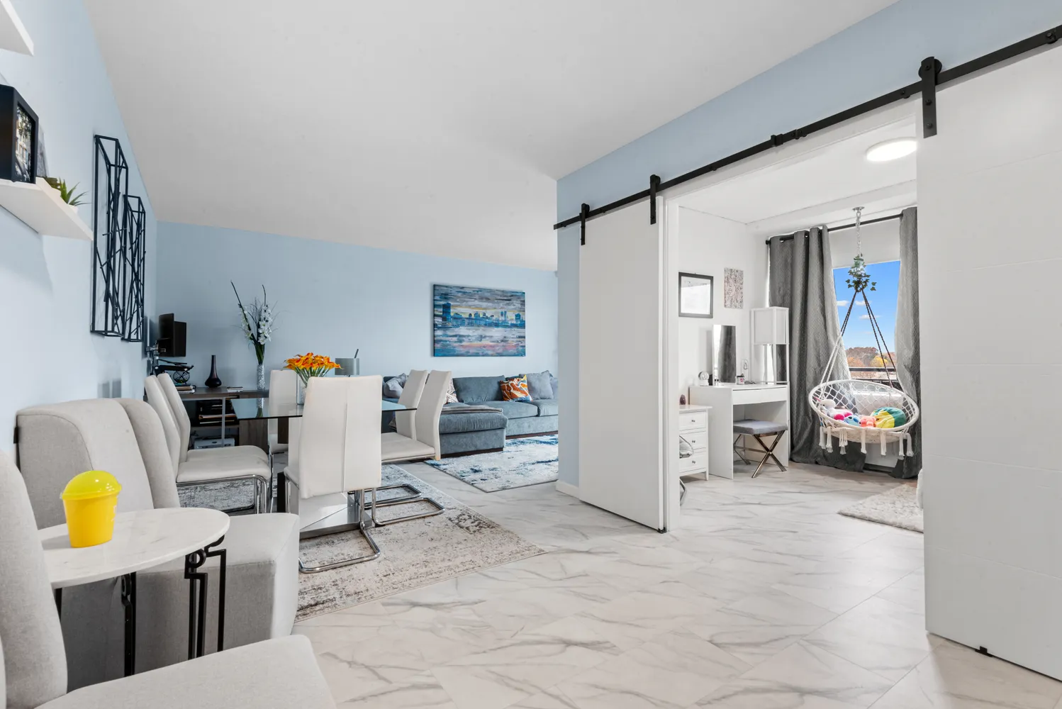 This full-service co-op includes a pool, gym, 24-hour doorman, security, BBQ areas,...Just moments from the GWB, this fully renovated home delivers modern design, incredible natural light, and sweeping views. The open living/dining area features floor-to-ceiling windows and a balcony, complemented by a sleek kitchen with stainless steel appliances and granite countertops. The spacious primary bedroom offers excellent closet space, and the updated bathroom is finished with clean, contemporary detail.