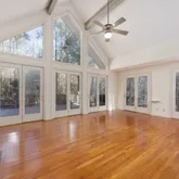 - Interior: Beamed Ceilings, Bookcases, Double Vanity, High Ceilings, Master On Main Level, Separate Shower, Soaking Tub, Tile Bath, Tray Ceiling(s), Vaulted Ceiling(s), Walk-In Closet(s)